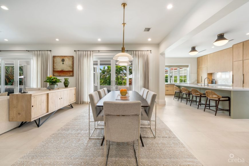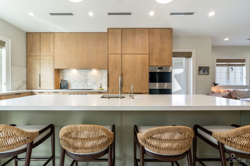 Designed by Cayman architect firm Chalmers Gibbs and fully updated in 2021, the home features new flooring, staircase, redesigned bathrooms, upgraded appliances, and fresh interior finishes throughout. Four ensuite bedrooms, a study, and a media room provide space for both relaxation and work, while a double garage supports practical day-to-day living.