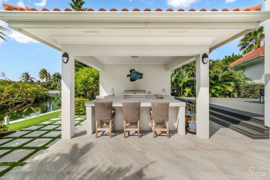 Set within the sought after gated community of Vista del Mar, this 5,615 sq. ft. Spanish-inspired Villa is right on a canal in a private, secure setting. Overlooking a protected island - preserved from future development - the home enjoys a calm, uninterrupted canal outlook just steps from the Cayman Islands Yacht Club, top waterfront dining, and minutes from Camana Bay and Seven Mile Beach.