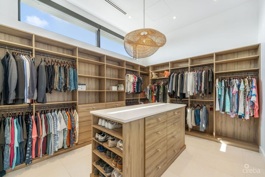 Inside, the residence offers six en-suite bedrooms, expansive living spaces, and a dramatic 30-foot foyer that leads to an open-plan living area and a chef’s kitchen complete with a butler’s pantry. Designed with everyday family life and entertaining in mind, the home seamlessly flows outdoors to covered dining and lounge areas, built-in BBQs, and retractable patio screens. A private expansive U-shaped dock (70ft + 40ft) provides easy access to the North Sound and nearby waterfront dining.