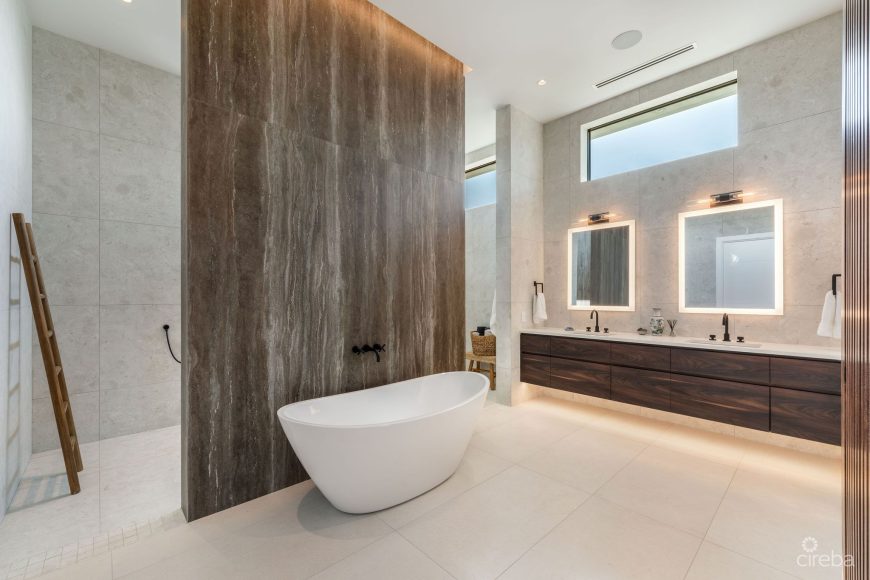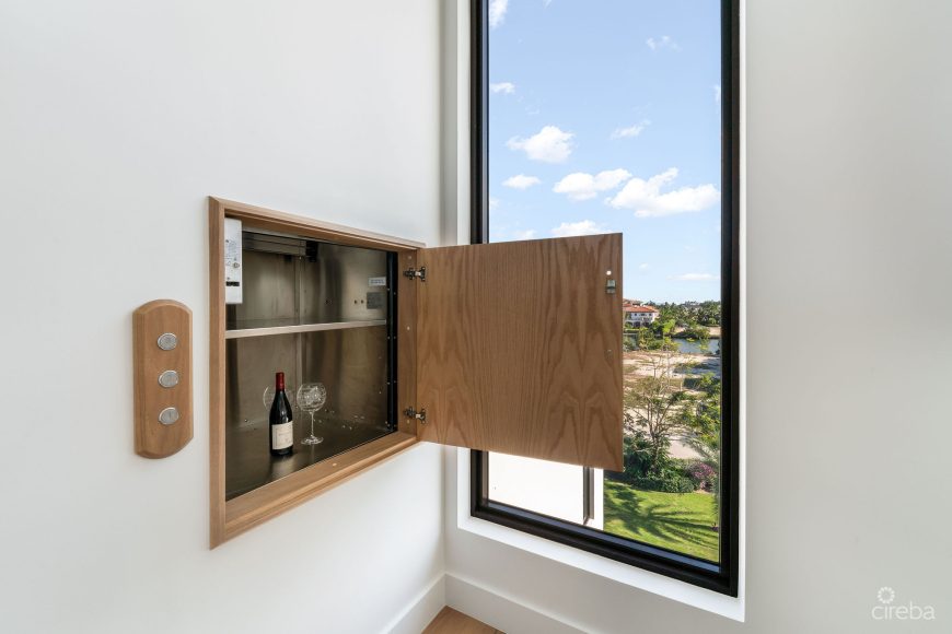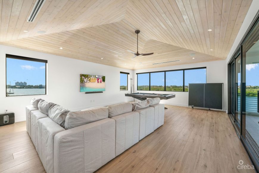 Built by Core Construction, one of Cayman’s most highly regarded builders, this three-story home boasts 127 feet of direct water frontage with uninterrupted views of the North Sound and Governor’s Creek, protected by a natural environmental buffer.