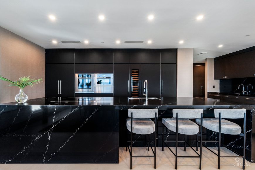 Spend your downtime by the oceanfront infinity pool with a tanning ledge or relax on your private terrace with seamless glass railings overlooking Seven Mile Beach. The building includes covered basement parking with 2 dedicated spots, nighttime security and a dedicated on-site manager, making day-to-day life smooth and stress-free.