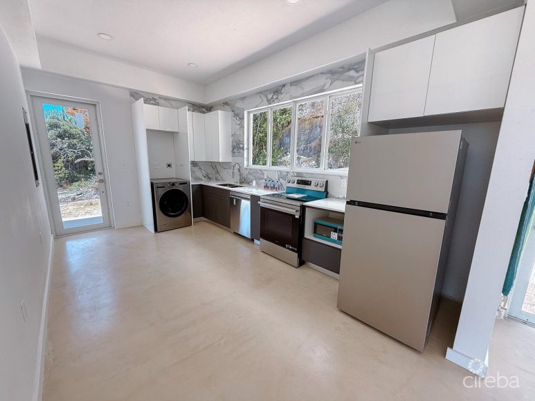 In the embrace of Cayman Brac, where world-class diving, the majestic Bluff, enchanting caves, and deep-sea fishing beckon, our eco modern villas redefine island living built on solid rock, with concrete exterior walls, slab and poured concrete roof to withstand the most severe weather conditions. Stunningly finished, with a rain shower in bathroom. This home is turnkey!