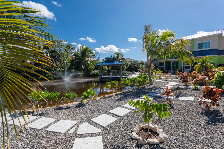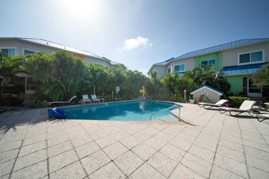 Cayman Crossing is a pet friendly community that offers fantastic amenities, including two swimming pools, a fully equipped gym, the sandy beach across the road with beach chairs for owners and their guests, a bit of green space for the kids to kick a ball or take in the nature and feed the turtles and seabirds who call Cayman Crossing’s lake system their home.