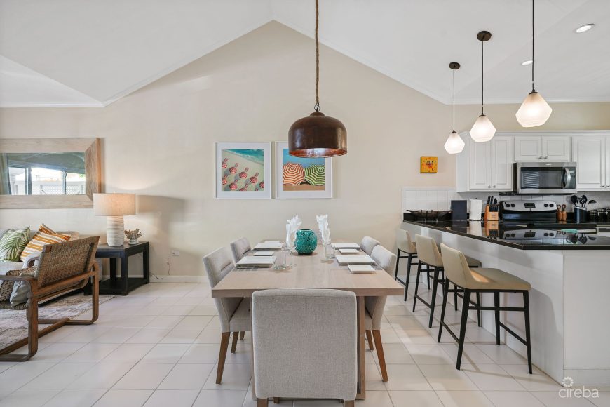 Coconut Bay is a waterfront residential community known for its relaxed island atmosphere, direct ocean access, and resort-style amenities, including a freshwater heated pool and landscaped grounds. The ironshore coastline provides direct access to swimming, snorkeling, and shore diving, while offering a quieter alternative to Seven Mile Beach and remaining close to supermarkets, restaurants, dive sites, and West Bay conveniences.