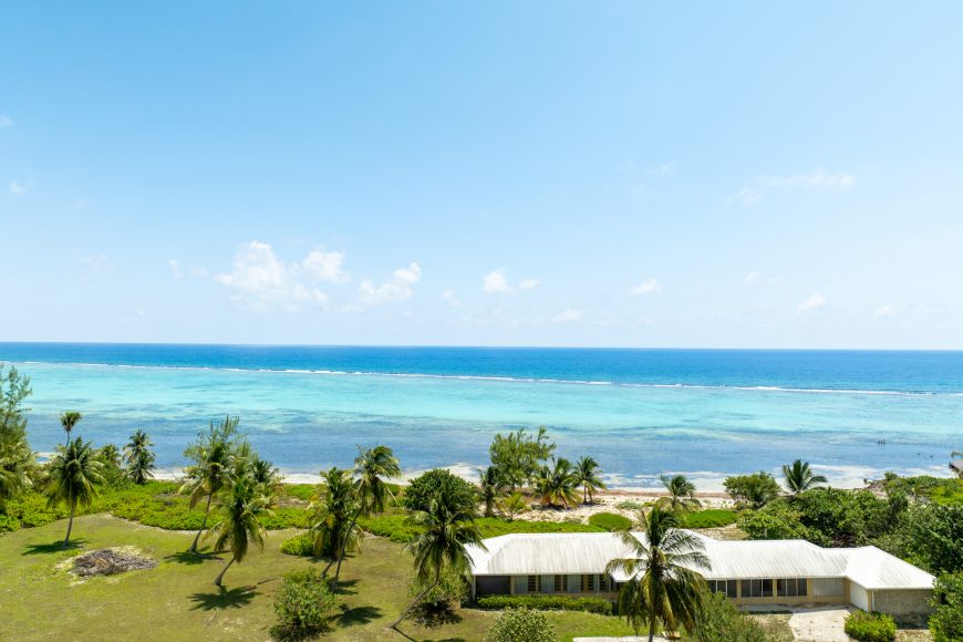 From the beach, the land rises up to a ridge around the location of the residence, then levels. There is a chain link fence along the road with signage and entrance gates. Utilities in place.