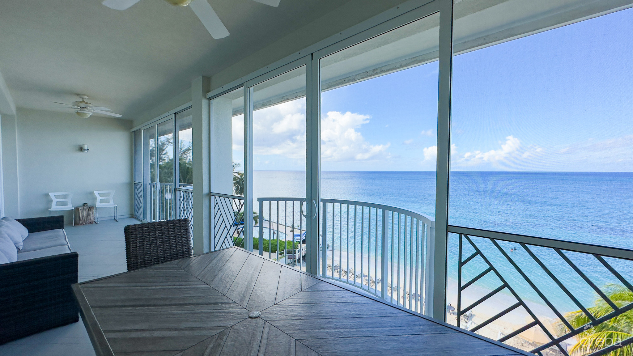 Your private terrace becomes an everyday retreat, offering front-row views of Seven Mile Beach’s shimmering shoreline. From sunrise reflections to deep sunset colours, this third-floor vantage point captures the full spectrum of oceanfront living. The terrace easily accommodates outdoor dining, lounging, and quiet moments where the sound of the sea sets the pace of your day.