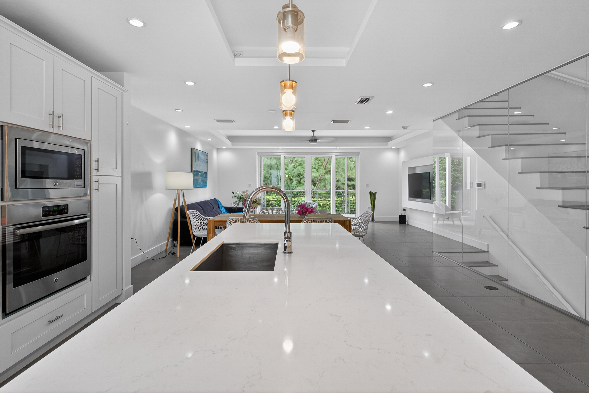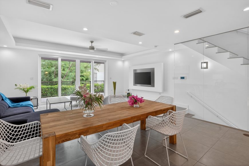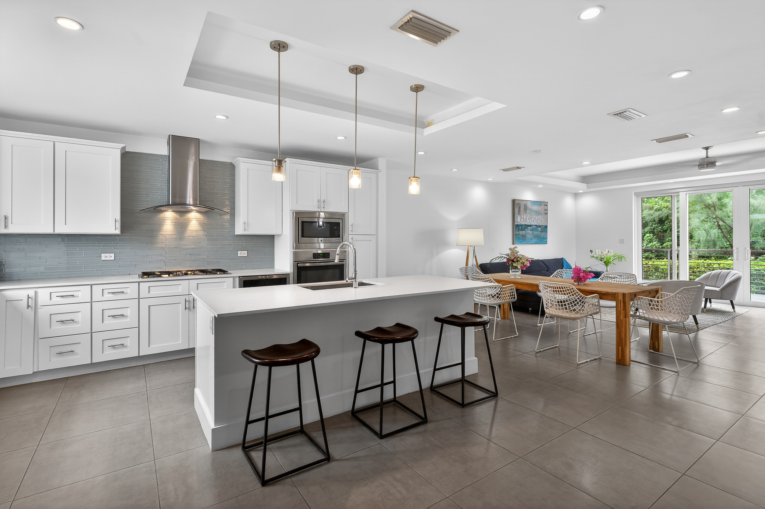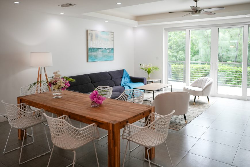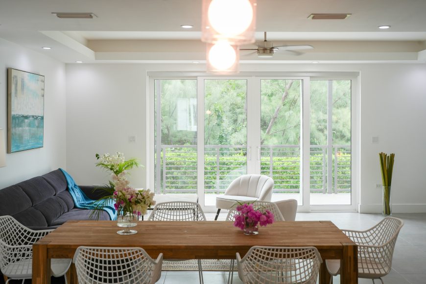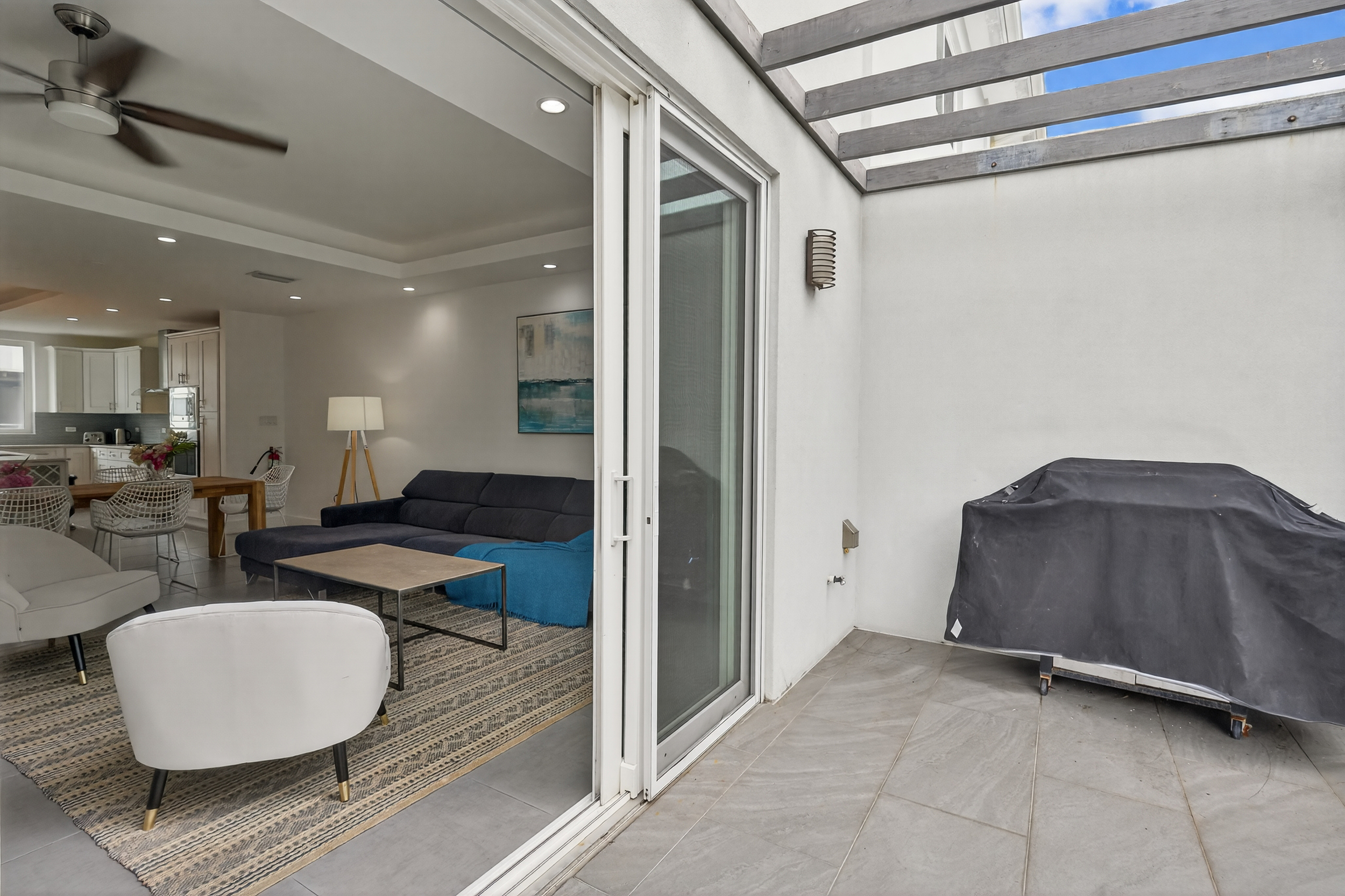 Bright living and dining areas with terrace access