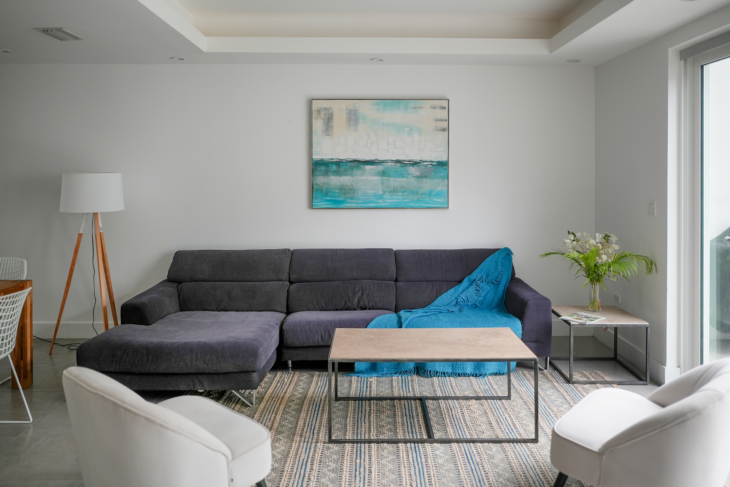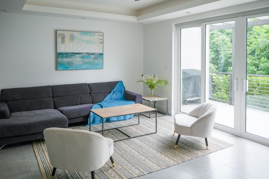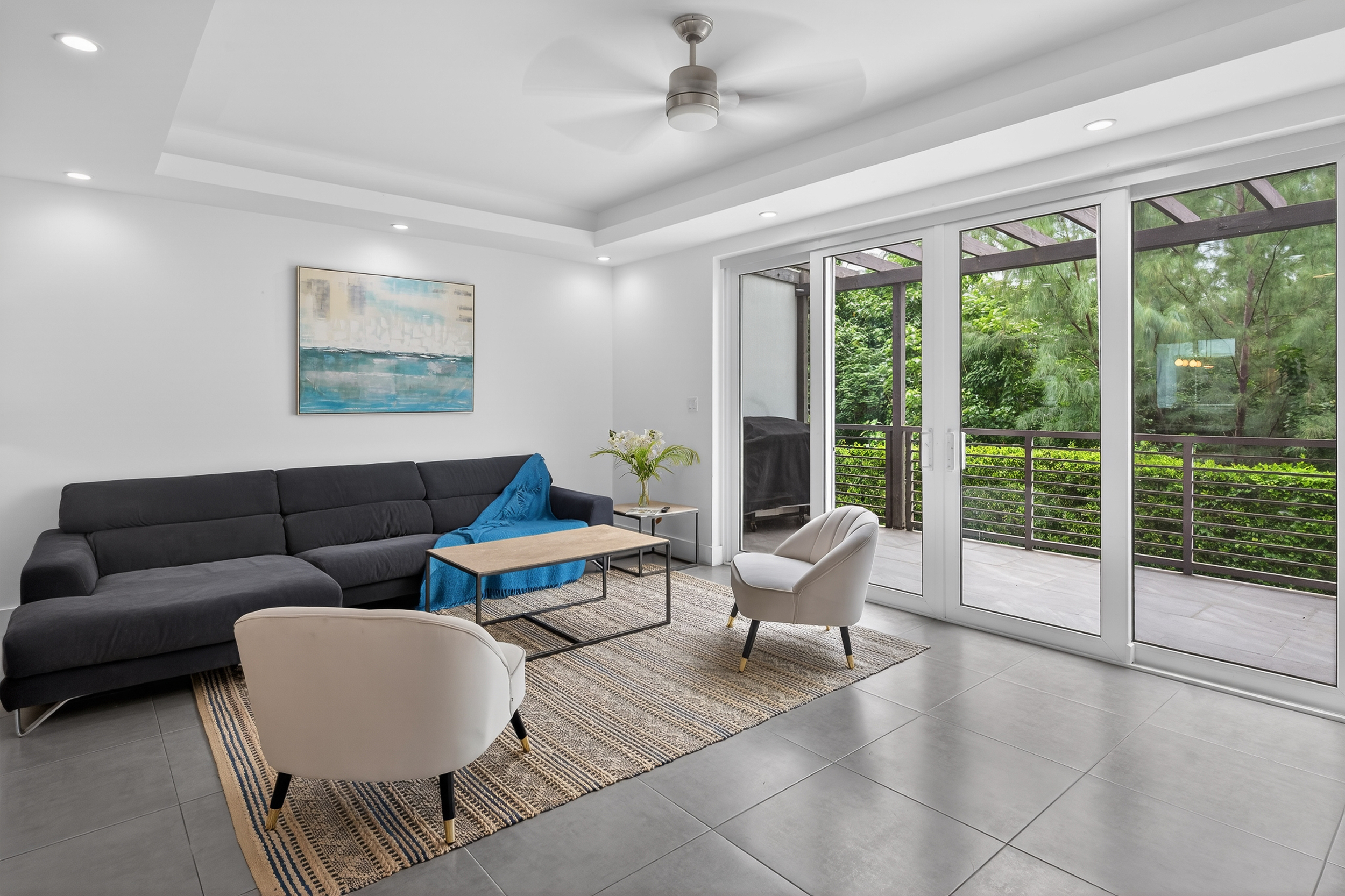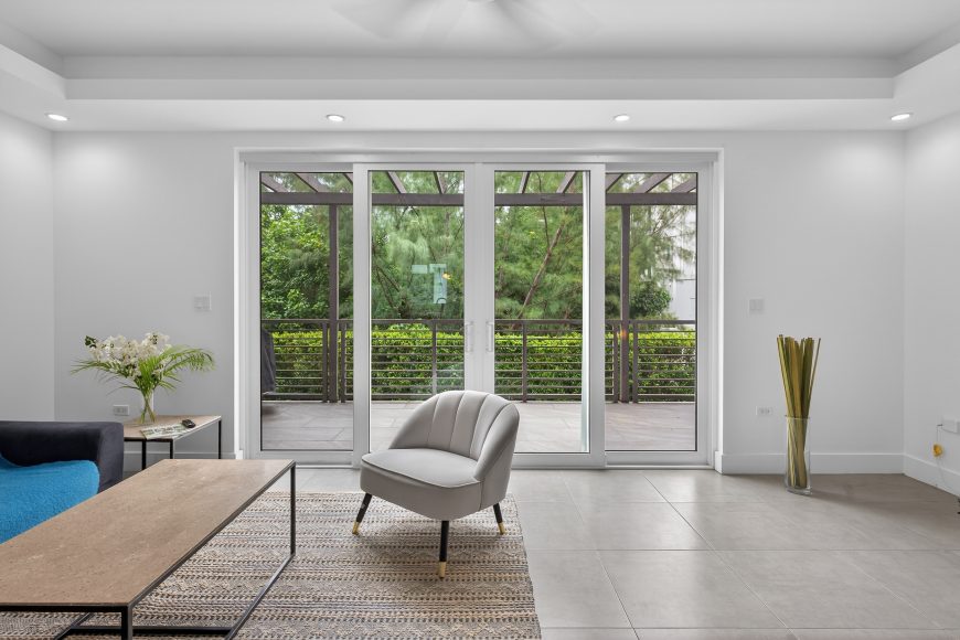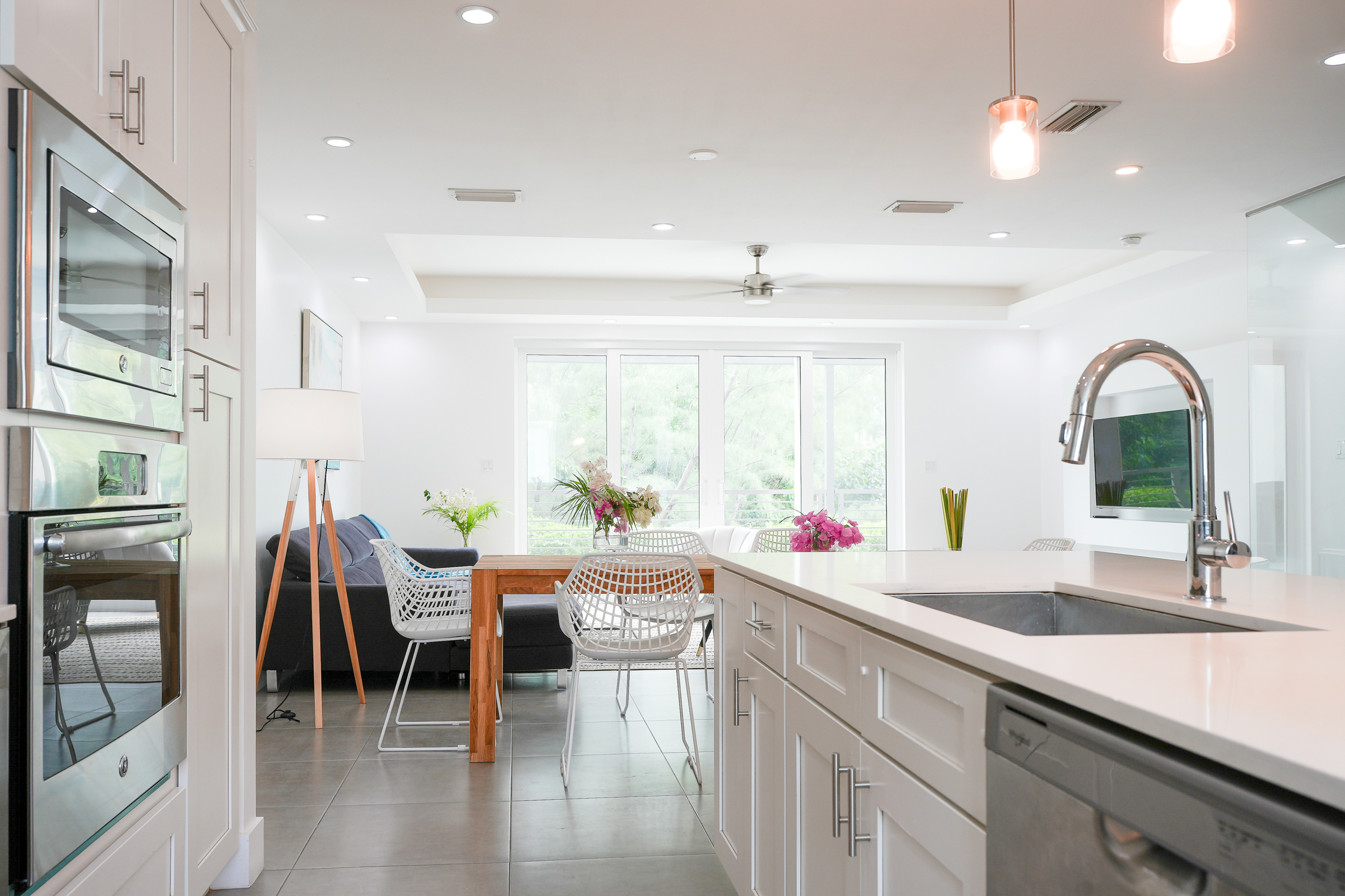 Bright living and dining areas with terrace access