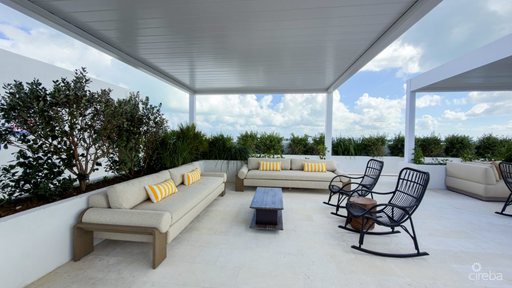 A signature feature of The Grove Too is its expansive rooftop terrace spanning the west building, offering panoramic views of the Caribbean Sea and North Sound. Residents enjoy a resort-style pool and hot tub, sauna and steam rooms, meditation garden, children’s play areas, social spaces, and a rooftop bar, amenities rarely found in boutique developments of this scale.