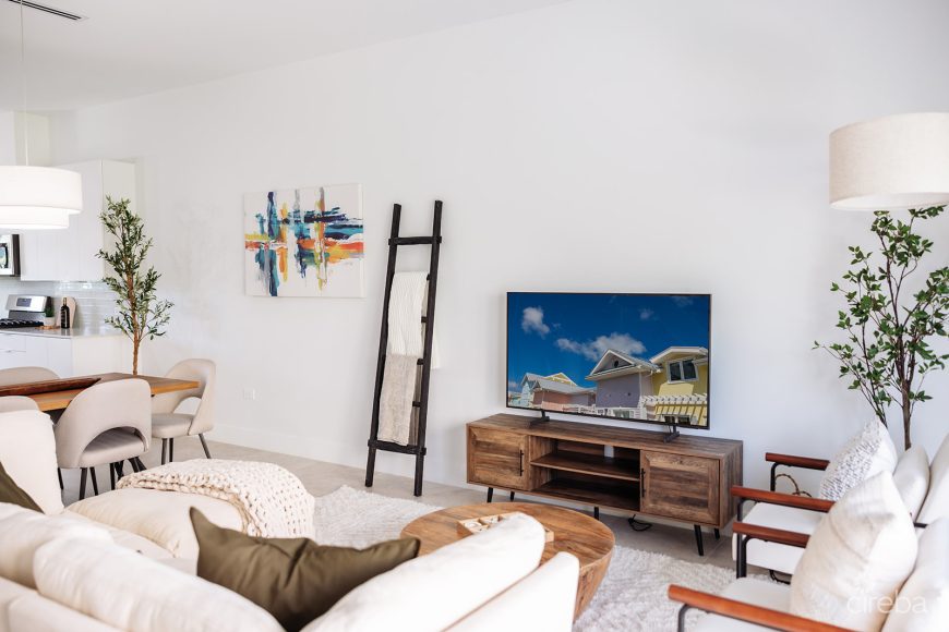 The Papaya unit at The Meadows in West Bay, Grand Cayman, is a thoughtfully designed 1200-square-foot townhome. The complex itself has to be seen to be appreciated. Phase One is now complete and a thriving community of residents are living in the properties this listed unit is in Phase Two and due for completion in July 2026.