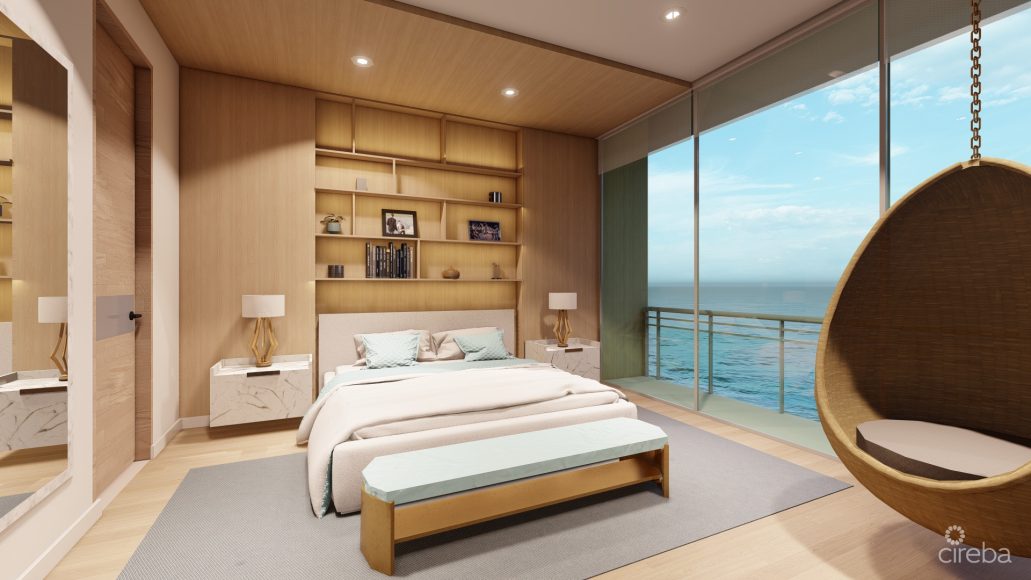 Villa 21 is a third-floor residence offering 1,662 sq. ft. of refined interior space with 3 bedrooms and 2.5 bathrooms. Its wide frontage and floor-to-ceiling hurricane-rated glass capture exceptional natural light and uninterrupted panoramic ocean views — a feature rarely achieved in Cayman developments.